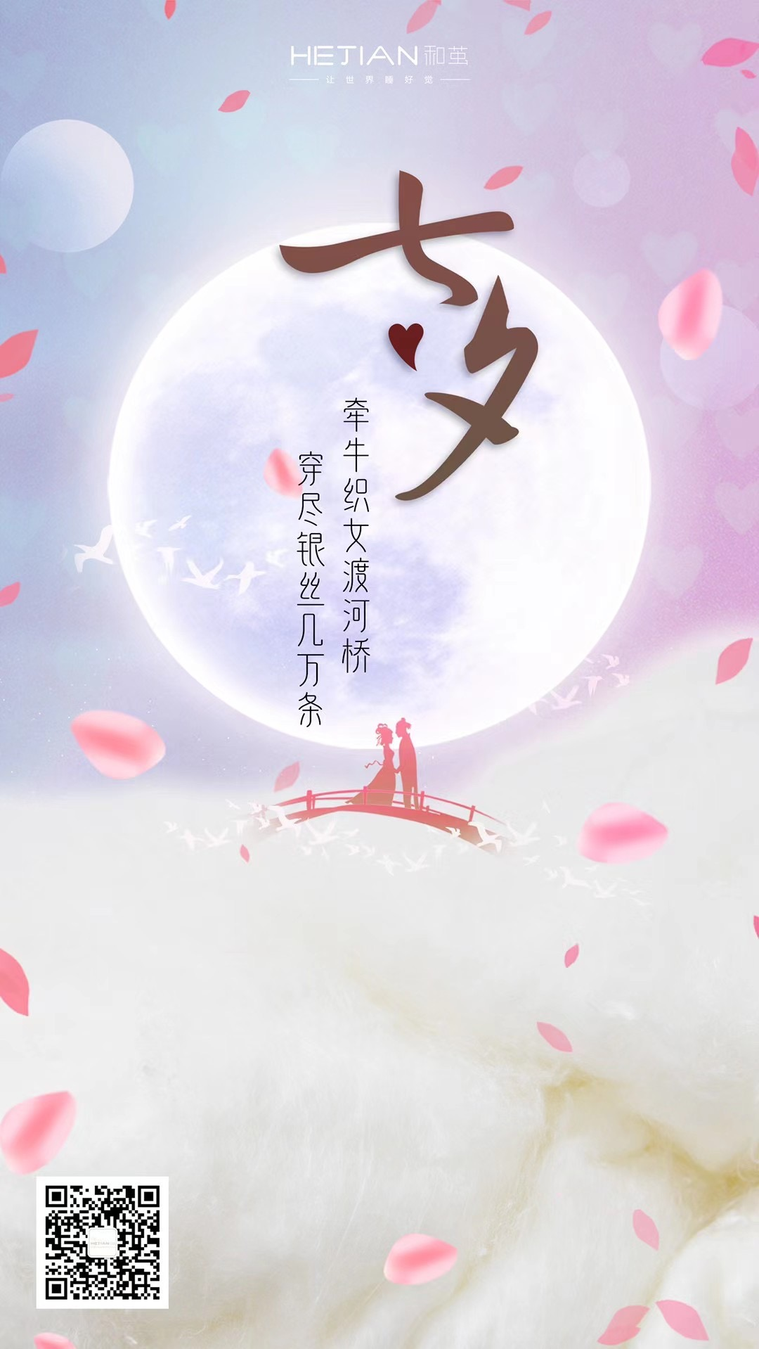 1.新春新月圆,今宵共枕眠。2.牵牛织女渡银河,穿进银丝几万条。3.从此,眼前人是心上人,心上人是枕边人。4.团圆不在距离,而在心意。那柔软的被子满载着爱意,沿着公路提前抵达。———和茧丝享卡