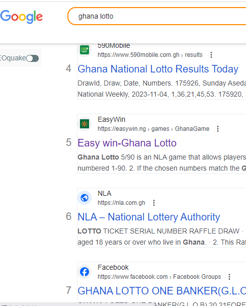 在尼日利亚“Ghanalotto”、“GhanaLottoResult”、“copybets”、“ScratchWin”、“nairapower”等关键词排名谷歌首页,为网站带来流量和注册用户。
